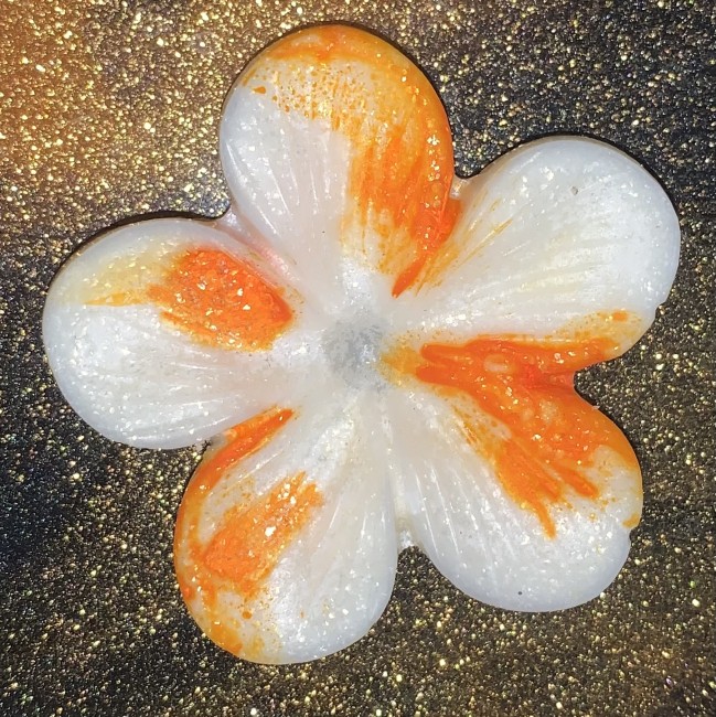 Superbe fleur de monoï senteur monoï pêche, mettez une touche floral et fruité dans votre maison et laissez vous transporter par son odeur .